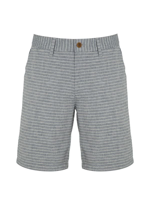Confeccionada em sarja com padronagem listrada, a Bermuda possui modelagem right fit, cós com passantes, bolsos frontais e posteriores, fechamento frontal por zíper e botão e acabamento pespontado.