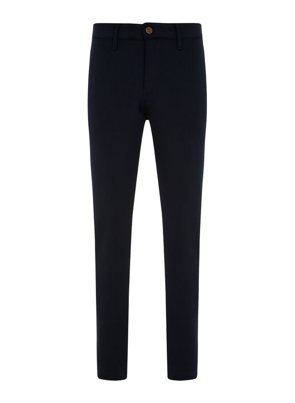 Confeccionada em malha, a Calça possui modelagem concept fit, cós com passantes, bolss frontais e posteriores, fechamento frontal por botão e zíper e acabamento pespontado.