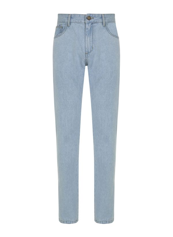 Confeccionada em jeans e algodão de cultivo sustentável, a Calça possui modelagem right fit, cós com passantes, bolsos frontais e posteriores, fechamento frontal por zíper e botão, etiqueta externa aplicada e acabamento pespontado.
