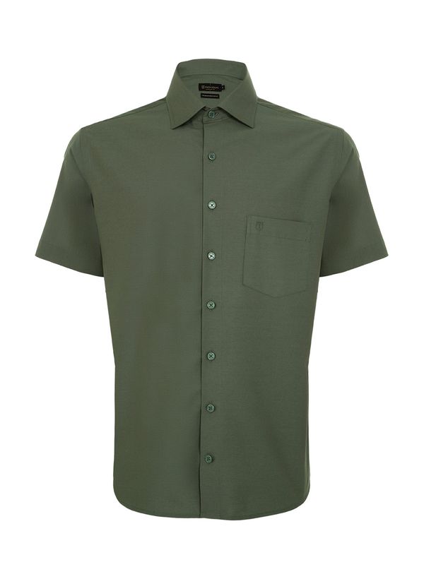 Confeccionada no tecido plano em Algodão de Cultivo Sustentável, a Camisa possui modelagem comfort fit, mangas curtas, padronagem lisa, fechamento frontal por botões, detalhe frontal de logo bordado, bolso tipo seta, colarinho Padua e acabamento pespontado.
