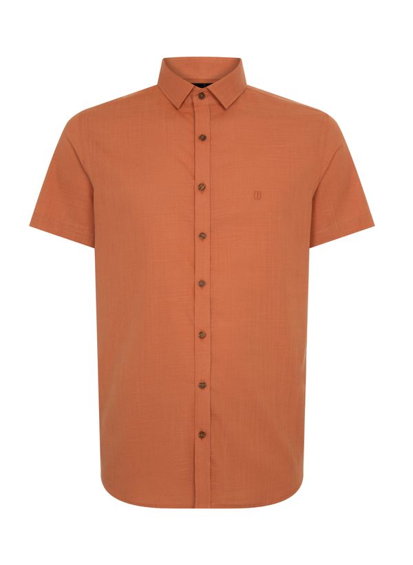 Confeccionada em tecido plano e algodão de cultivo sustentável, a Camisa possui modelagem slim fit, colarinho Lucca, vista com botões, assinatura da marca em bordado, mangas curtas e acabamento pespontado.