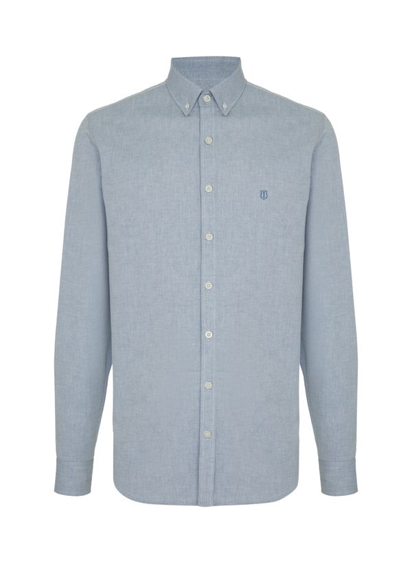Confeccionada em tecido plano e algodão de cultivo sustentável, a Camisa possui modelagem slim fit, colarinho Button Down, vista com botões, assinatura da marca em bordado, mangas longas com abotoamento nos punhos e acabamento pespontado.