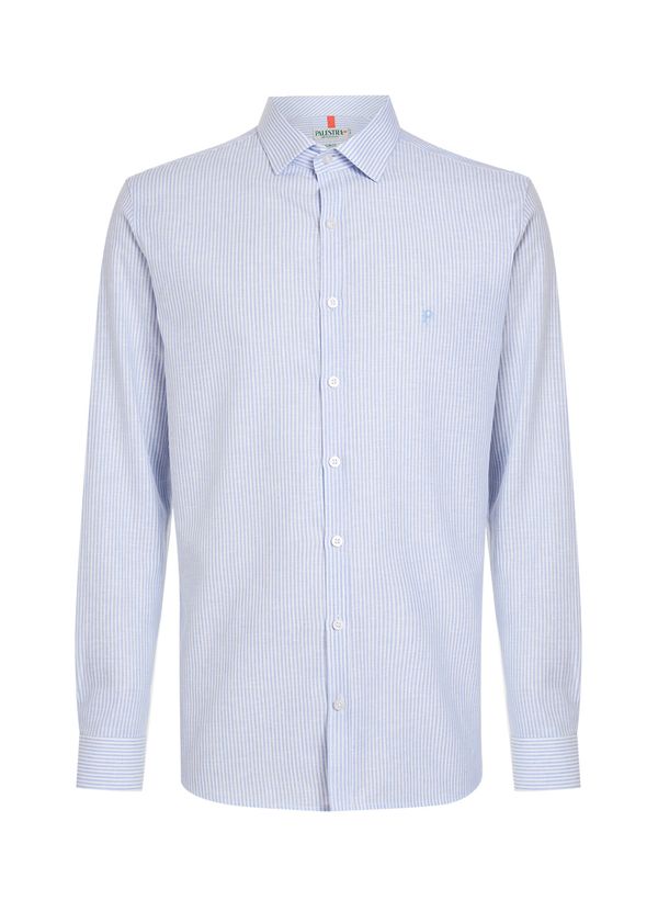 Confeccionada em tecido plano com padronagem listrada, a Camisa possui modelagem slim fit, colarinho lucca, vista com botões, detalhe frontal da logo da marca bordada, mangas longas com abotoamento nos punhos e acabamento pespontado.