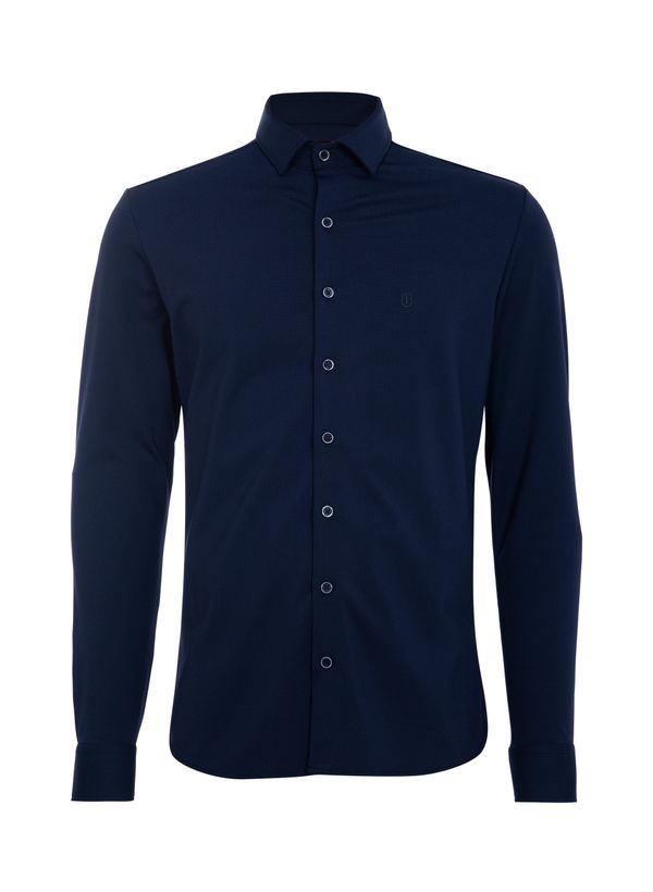 Slim Fit: Do tamanho certo. Nem justa, nem ampla, tem o corte equilibrado que se encaixa no corpo sem marcar. Não possui pences e as mangas têm uma única prega. Combine com um suéter elegante e uma bela calça de alfaiataria!