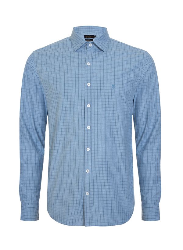 Colarinho Lucca: Desenho Versátil, estrutura média e visual contemporâneo. Cor: Azul Médio