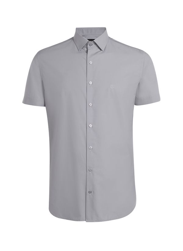 Confeccionada em tecido plano com tecnologia easy iron, a Camisa possui modelagem slim, colarinho lucca, mangas curtas, fechamento frontal por botões, logo frontal bordado, barra arredondada e acabamento pespontado.