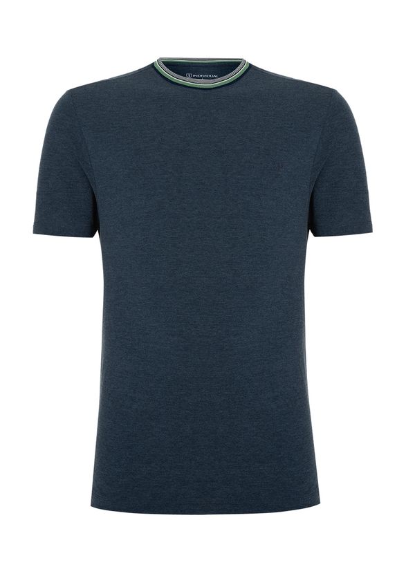 Confeccionada em malha, a camiseta possui modelagem regular, mangas curtas, decote careca, gola listrada, bordado no peito e acabamento pespontado.