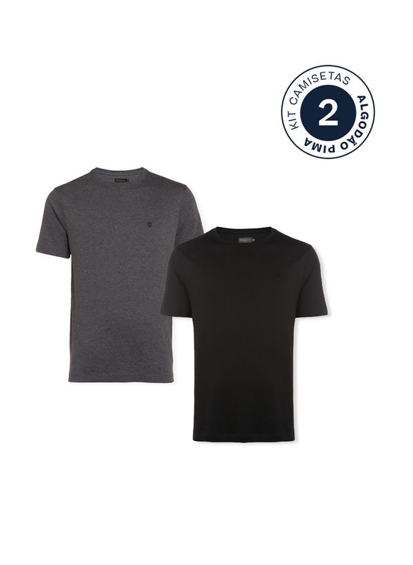 Kit 2 Camisetas Slim Pima Preta e Cinza Masculina Individual