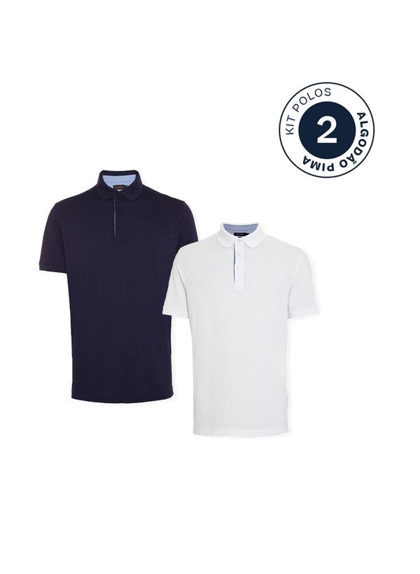 Kit 2 Polos Comfort Pima Branca e Azul Masculina Individual