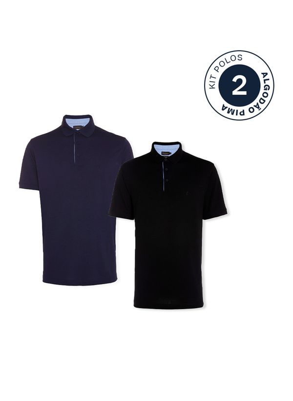 Kit 2 Polos Comfort Pima Preto e Azul Masculina Individual