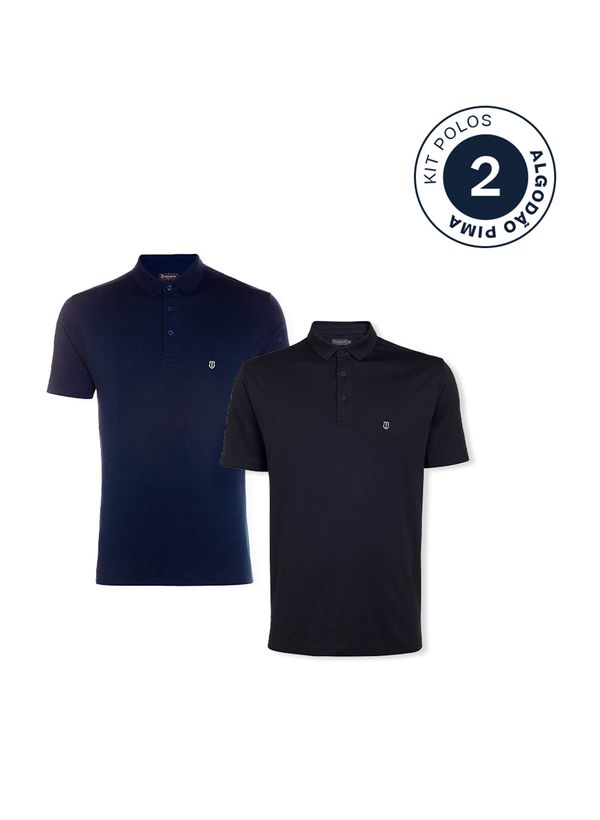 Kit 2 Polos Slim Pima Preta e Azul Masculina Individual