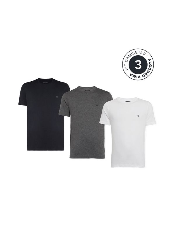 Kit 3 Camisetas Slim Pima Branca Azul Cinza Masculina Individual