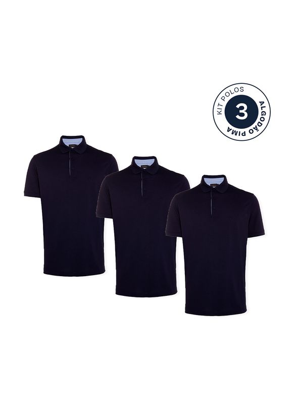 Kit 3 Polos Comfort Pima Azul Marinho Masculina Individual